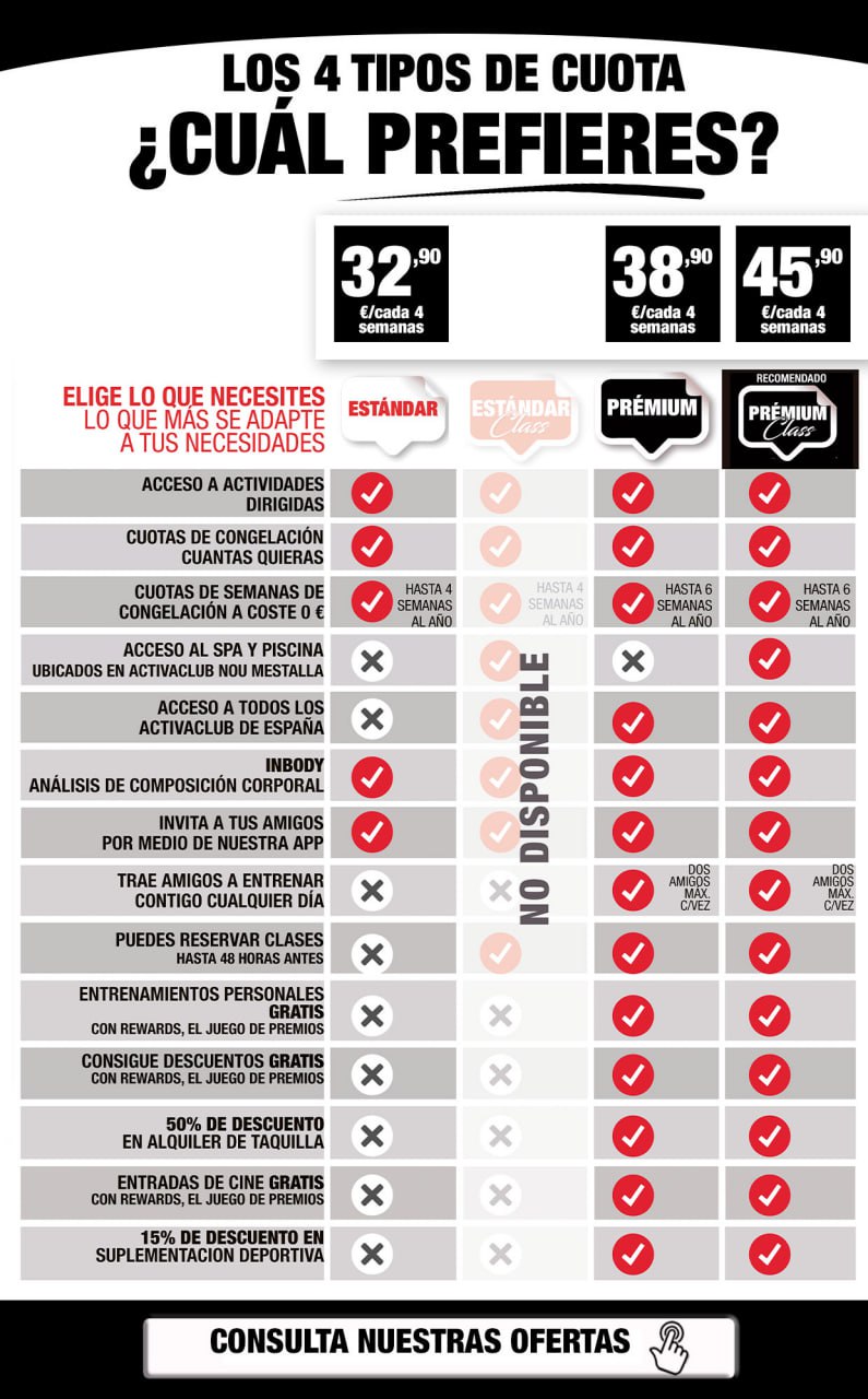 ◼ Sólo válido para ex socios con mínimo 1 mes de baja o nuevos socios.